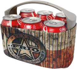 Holds a 6 pack of cans & bottles. Keeps beverages cold up to 8 hours.